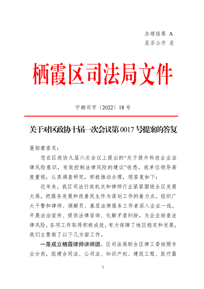 文  號:    寧棲司字〔2022〕18 號 關 鍵 詞:    建議提案