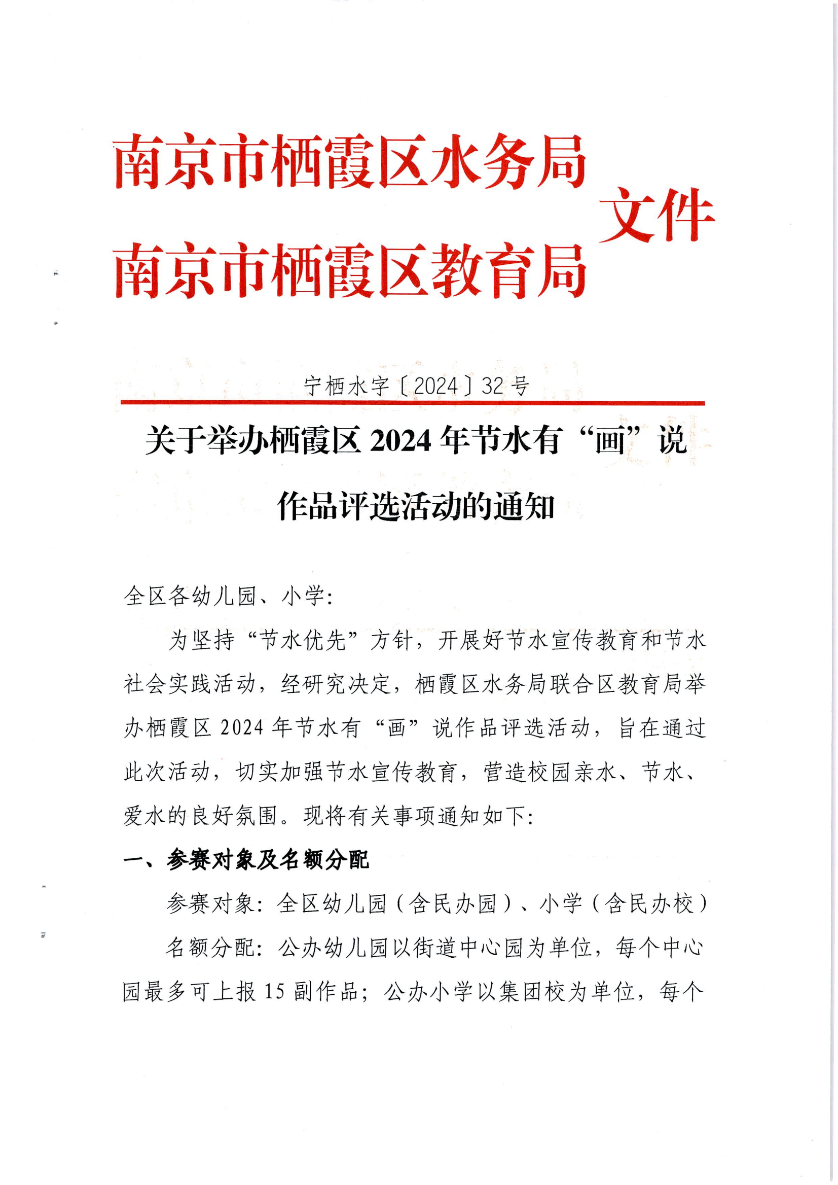 關于舉辦棲霞區2024年節水有“畫”說作品評選活動的通知(寧棲水字[2024]32號)