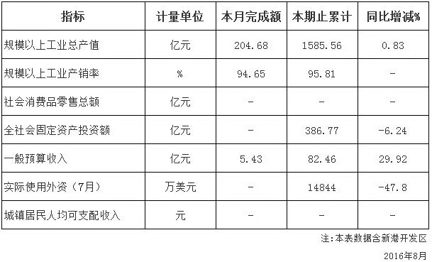 2016年8月份主要經(jīng)濟(jì)指標(biāo)完成情況