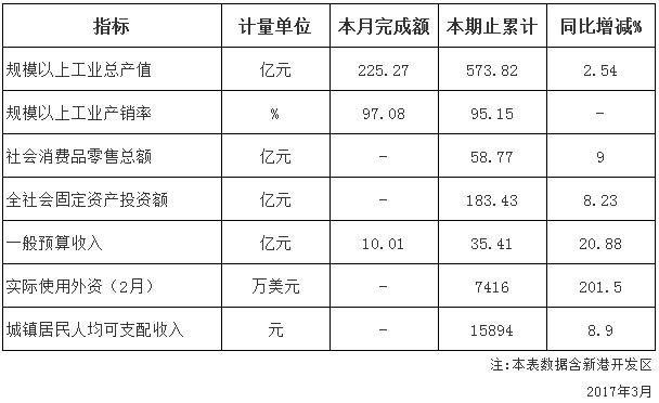 信息名稱:    2017年3月份主要經濟指標完成情況