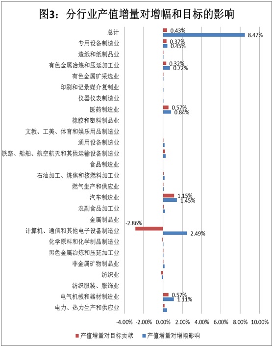 各行業產值同比增量對增幅和目標的影響見圖3