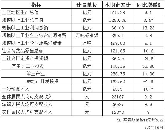 2017年6月份主要經(jīng)濟(jì)指標(biāo)完成情況