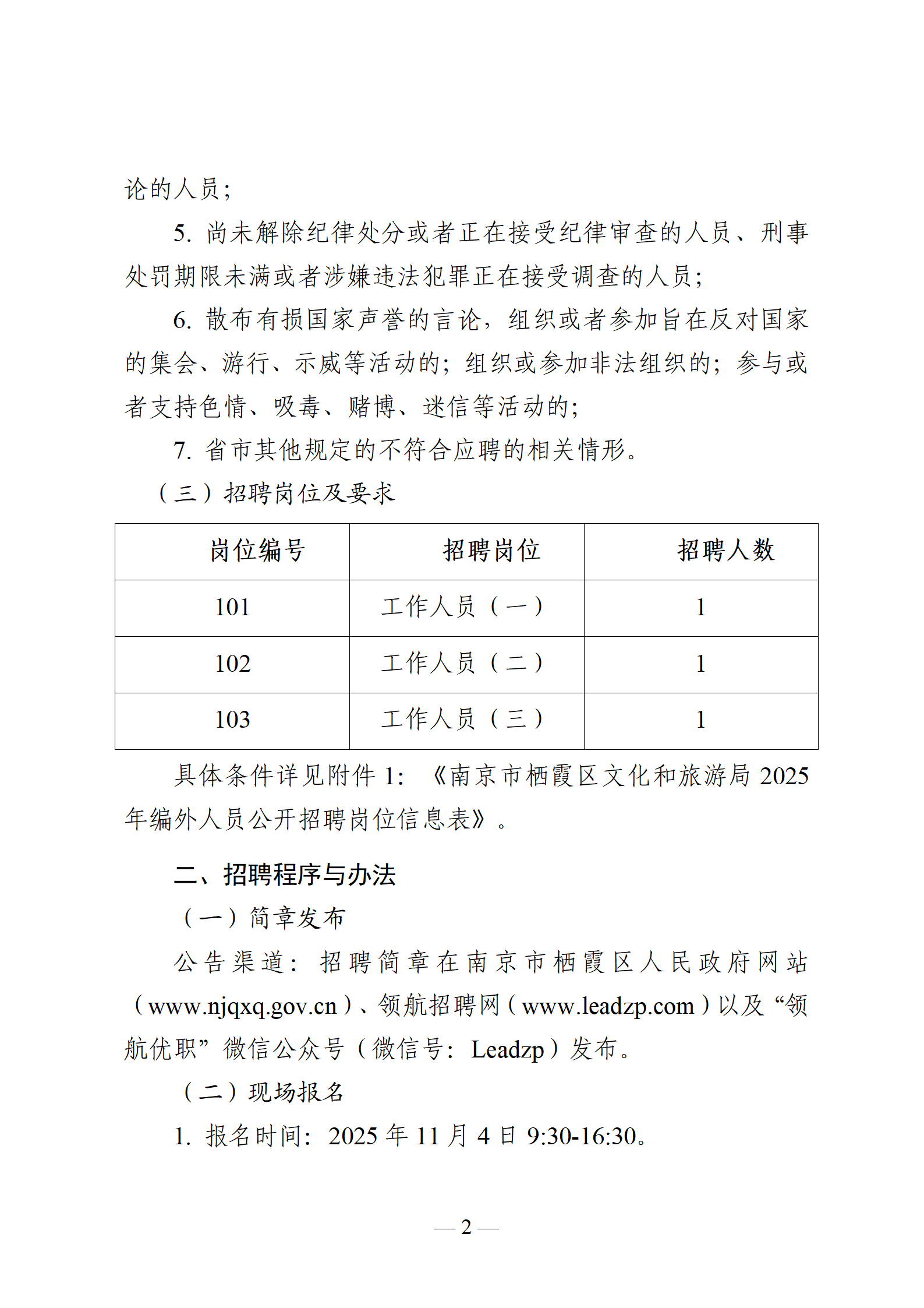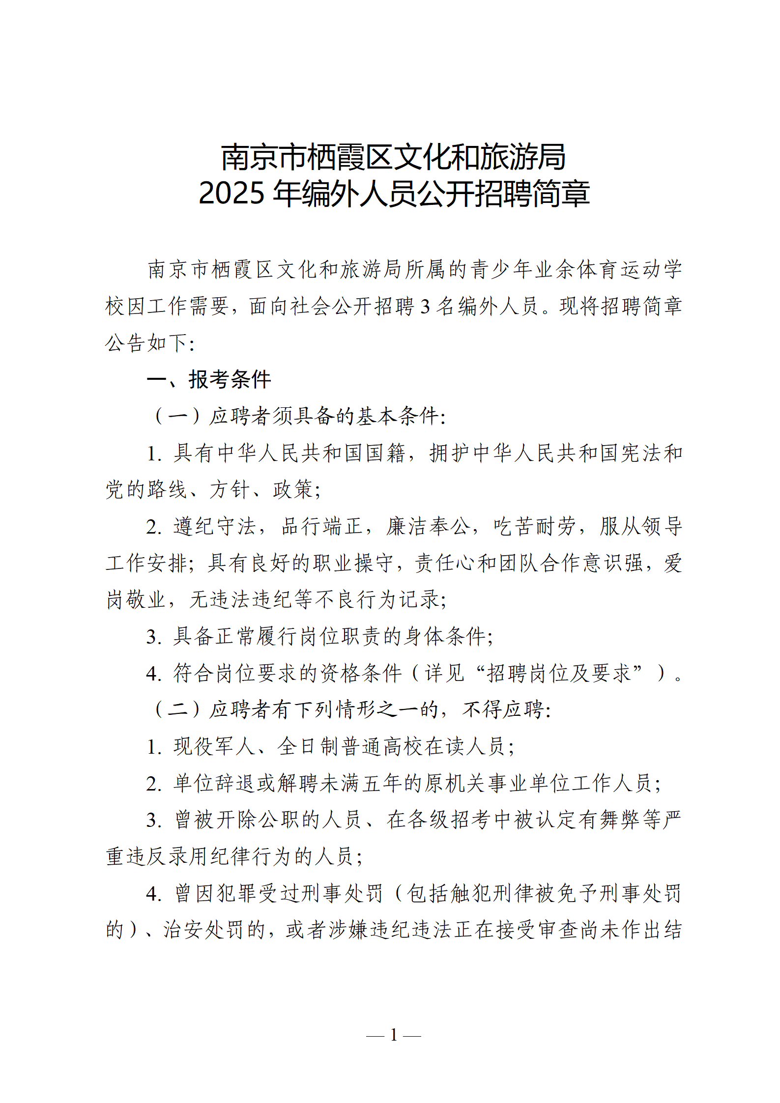 信息名稱:    南京市棲霞區(qū)文化和旅游局2025年編外人員公開招聘簡章