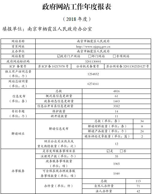 南京市棲霞區政府網站工作年度報表(2018年)
