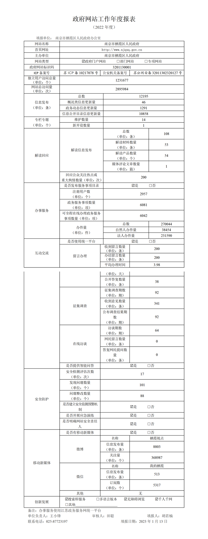 當前位置:首頁 > 棲霞區人民政府 > 信息公開專欄 > 政府網站工作年度報表