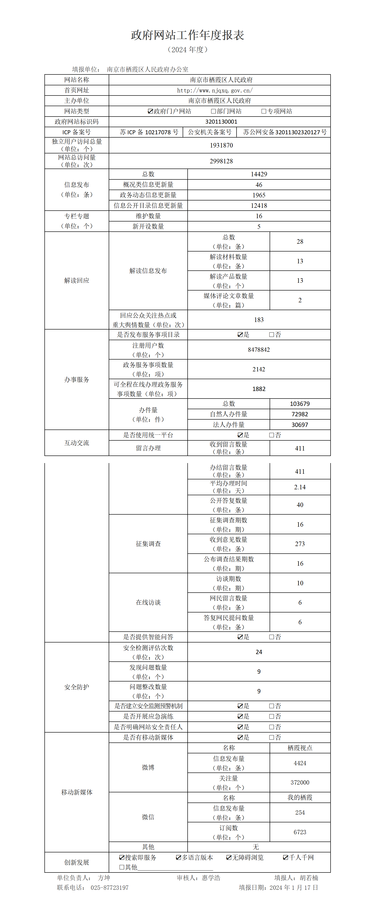 南京市棲霞區政府網站工作年度報表(2024年)
