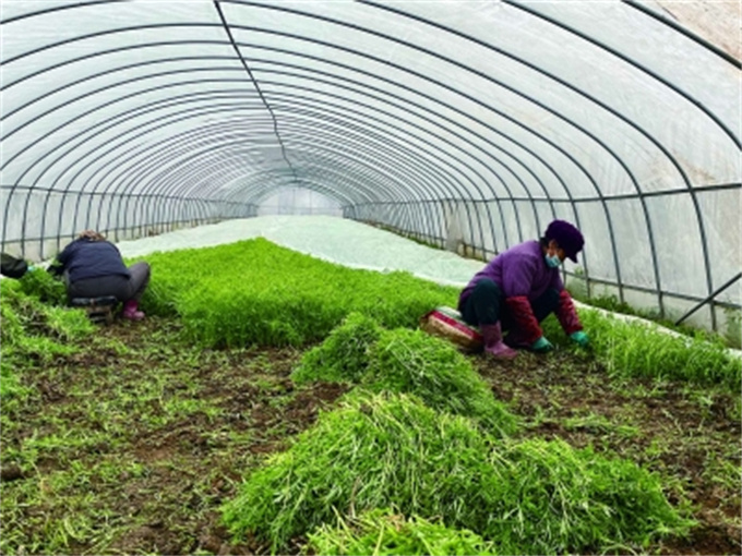 提起增收致富,陳雷信心十足。“蘆蒿收割采摘技術要求不高,幾乎是人人都能干。所以合作社每年能給本地村民提供不少就業機會。”從陳雷口中,記者了解到,過年前一周屬蘆蒿地最忙的時候,那個時間段在合作社蘆蒿大棚工作的村民差不多有近百位。