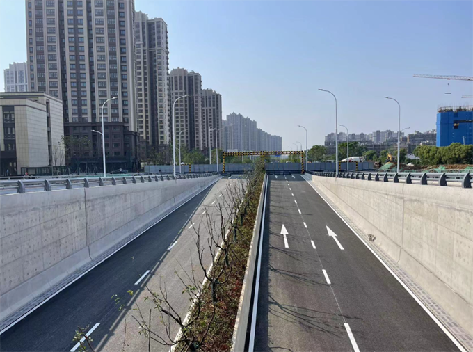 下穿鐵路的位置緊鄰新建成的保障房片區江風苑南苑。道路在這里形成了雙層結構。中間雙向4車道,以箱涵形式下穿鐵路后對接燕丹路,兩側雙向4車道略高,向南延伸與燕堯路(土城頭路)對接。