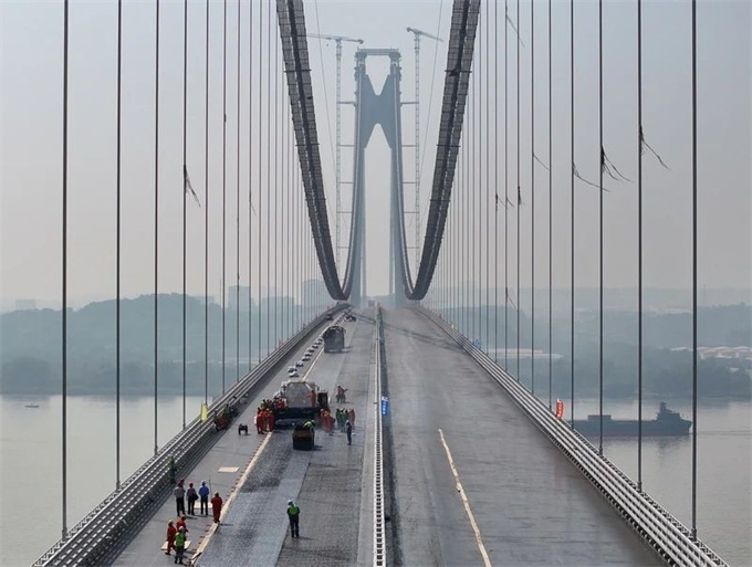 仙新路過江通道于2020年3月正式開工,2022年5月主塔封頂,2023年3月主纜架設(shè)完成,6月開始主橋吊裝工作,9月大橋順利合龍。隨著瀝青攤鋪施工,通道距離2024年通車的目標(biāo)將更進一步。