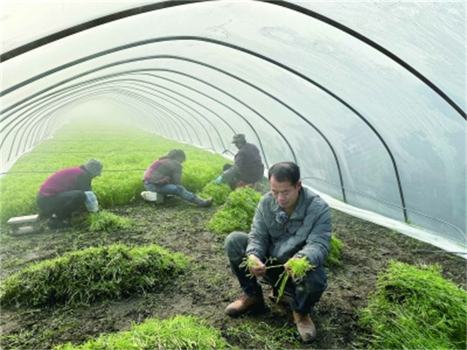 洲磊蔬菜專業合作社的幾名工人正在采收蘆蒿。
