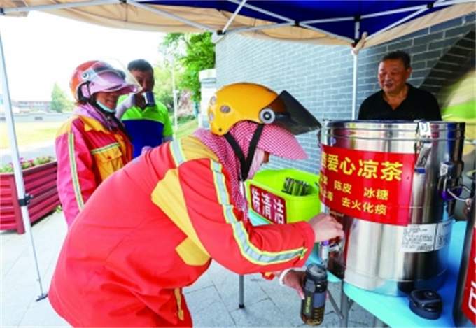 811日,棲霞區棲霞街道銀礦地質社區在虎爪洞納涼點設置免費愛心涼茶攤,為環衛工人、快遞小哥、工地工人等室外工作者免費供應涼茶消暑。