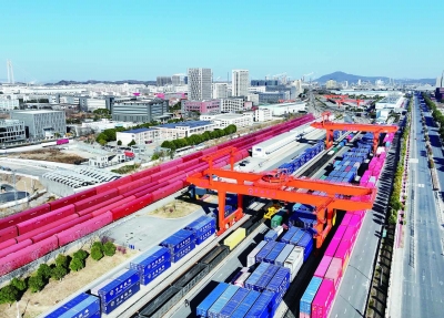 217日,南京物流中心堯化門站內,工人操作大型機械24小時輪班作業裝卸貨運集裝箱,全力沖刺首季度“開門紅”。今年截至215日,堯化門站共裝車5680車,發送貨物10.72萬噸,運輸收入5947.85萬元。其中商品車發送2935車,較去年同期增加575車,增幅24.36%