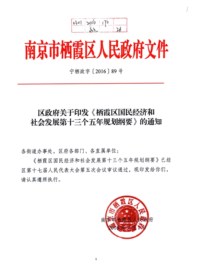 區政府關于印發《棲霞區國民經濟和社會發展第十三個五年規劃綱要》的通知