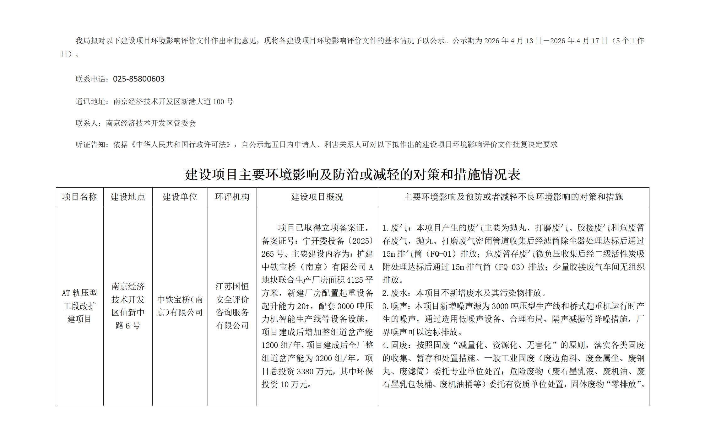 擬對(duì)建設(shè)項(xiàng)目環(huán)境影響評(píng)價(jià)文件作出審批意見的公示(2026年4月14日)