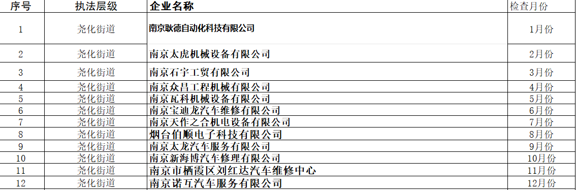 堯化街道2025年涉企檢查計劃表