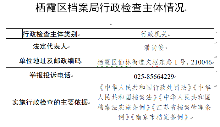 棲霞區(qū)檔案局行政檢查主體情況