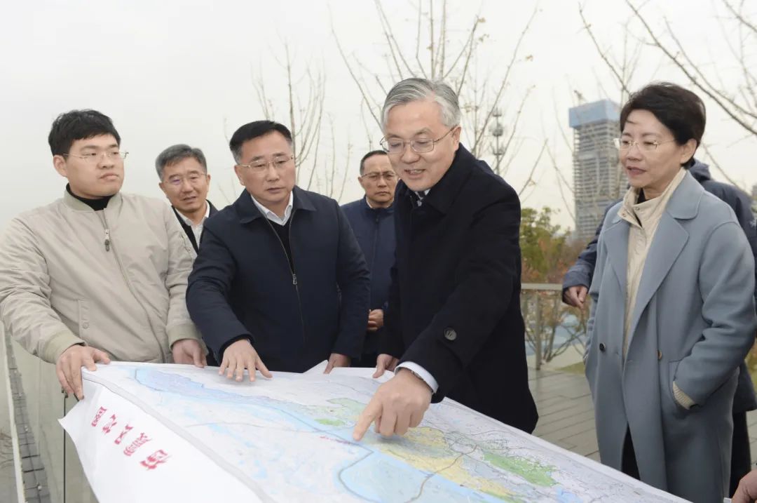 周紅波在燕子磯濱江公園參觀展廳,詳細了解片區綜合整治情況,并聽取棲霞區產業規劃布局情況匯報。