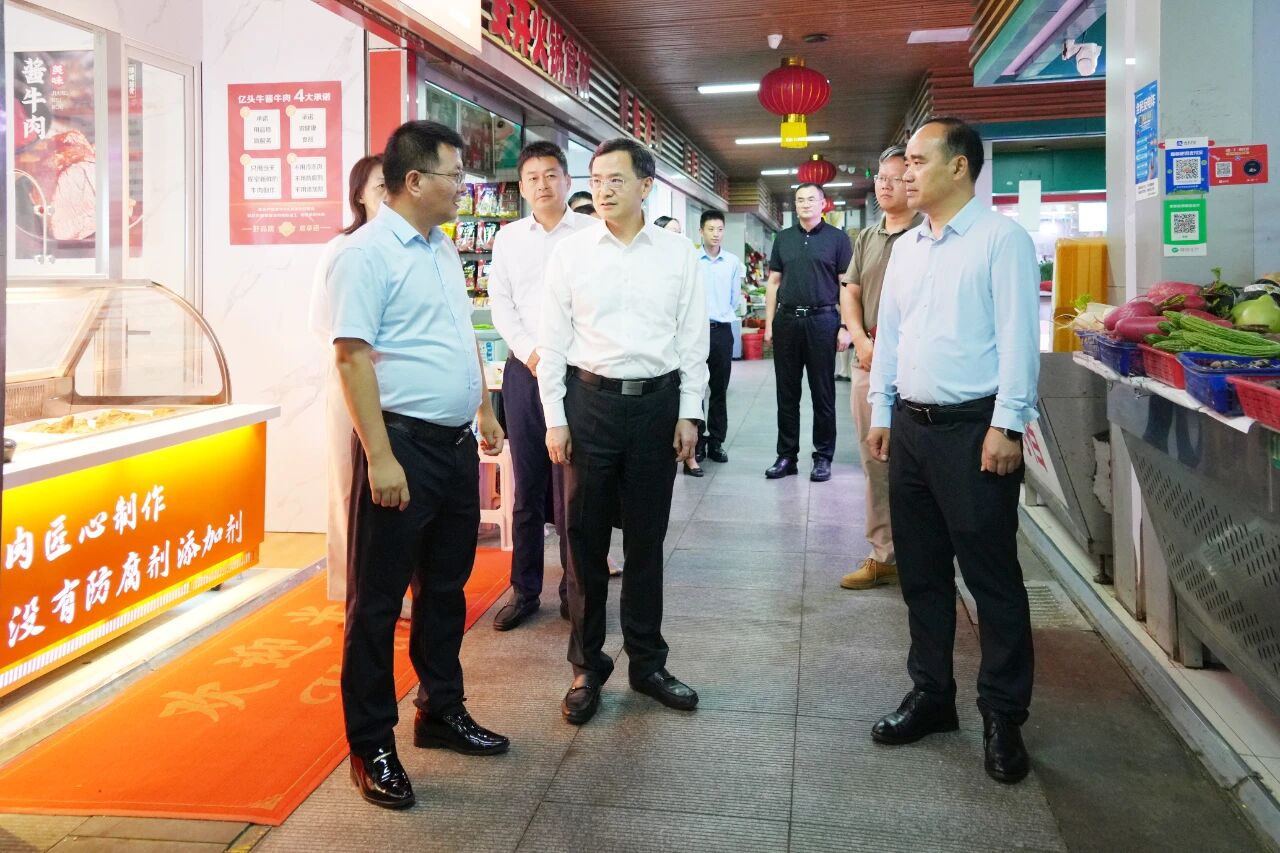 在南大和園農貿市場,孫海東圍繞群眾“菜籃子”安全,重點核查水、電、氣等設施使用是否合規,并了解市場內蔬菜、肉食、水產等各類農副產品進貨渠道、每日銷售等情況。他叮囑市場管理方要落實安全生產主體責任,加強日常巡查、整治消防隱患、規范經營秩序,要抓實食品安全、保供穩價等工作,讓群眾在節日采購中既“買得放心”,也“消費安心”。