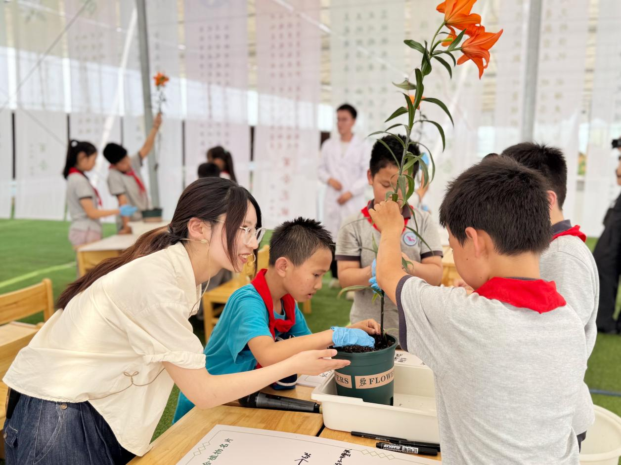 八卦洲科學教育考察活動由棲霞區科協承辦,專家團赴江蘇省科協農業科普基地(百合實驗基地)參觀,并觀摩“田野里的科學課”,棲霞區科學老師楊帆、南京農業大學博士生梁蕤和八卦洲中橋小學四2班學生共同帶來《探秘百合》一課。課堂中,楊老師引導學生通過科學的方法觀察百合基地的各類百合,為百合制作植物名片,梁老師對百合的專業知識進行講解,學生受益匪淺,獲得了各位院士專家的一致好評。