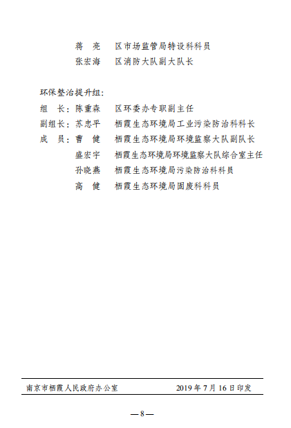 區政府辦公室關于成立棲霞區化工產業安全環保整治提升領導小組及辦公室的通知