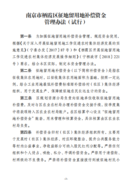 《南京市棲霞區征地留用地補償資金管理辦法(試行)》的政策解讀