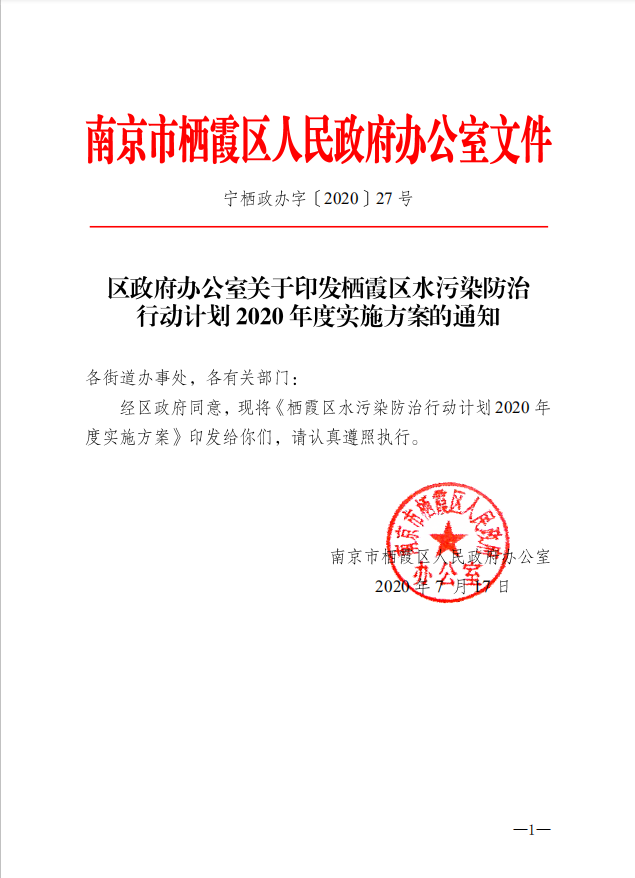 區(qū)政府辦公室關(guān)于印發(fā)棲霞區(qū)水污染防治行動計(jì)劃2020年度實(shí)施方案的通知