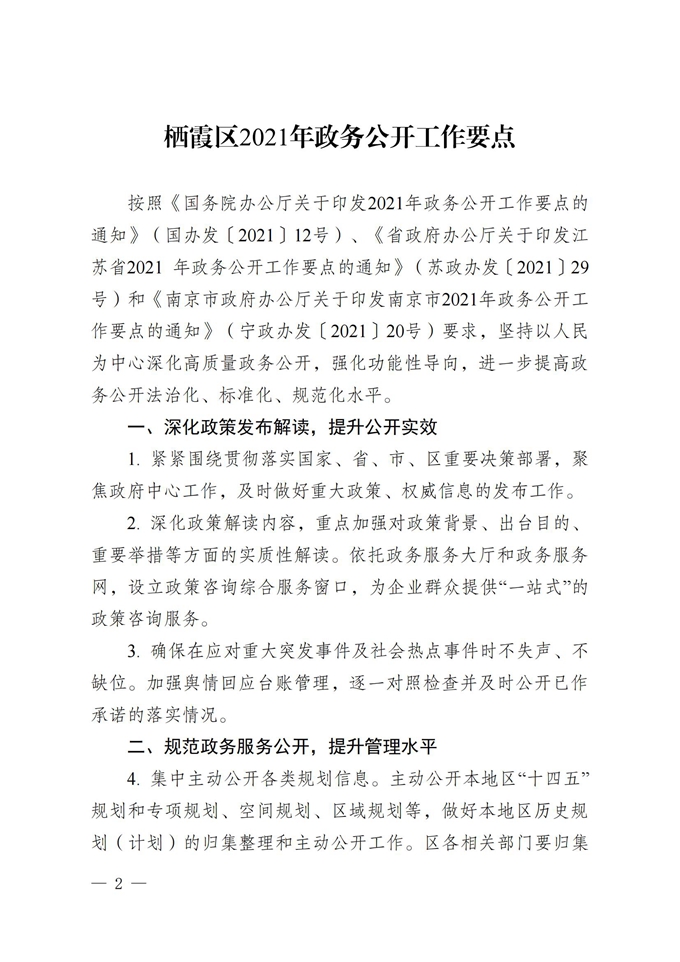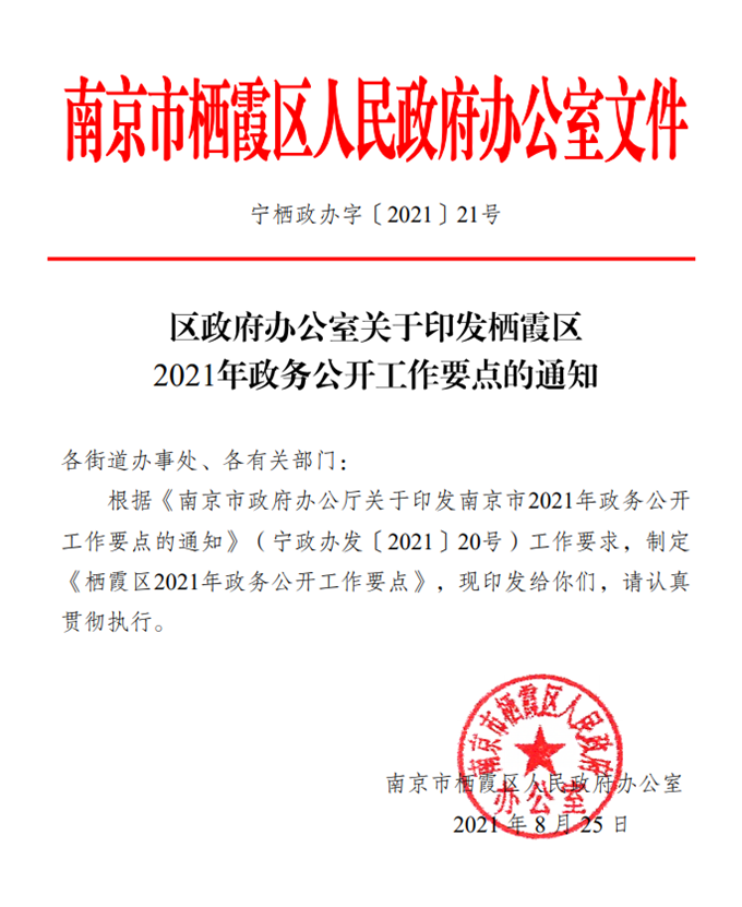 區政府辦公室關于印發棲霞區2021年政務公開工作要點的通知