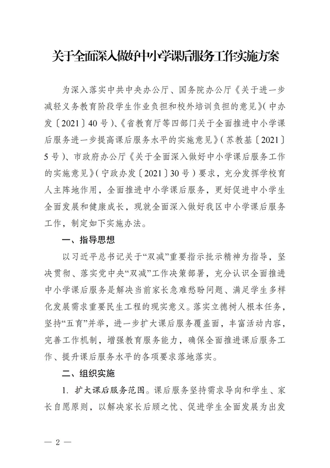 區(qū)政府辦印發(fā)關(guān)于全面深入做好中小學(xué)課后服務(wù)工作實(shí)施方案的通知