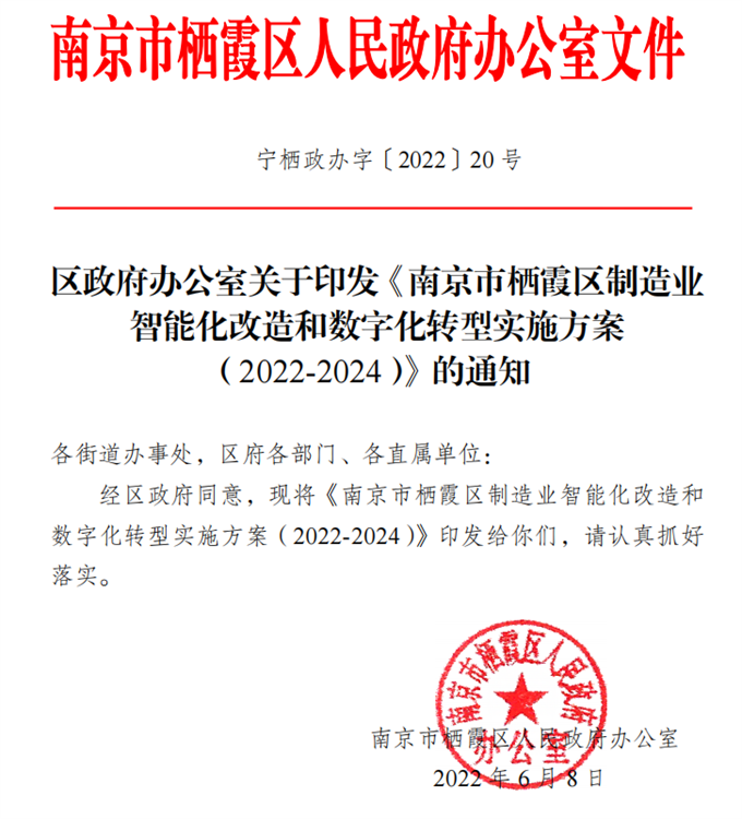 文字解讀:《南京市棲霞區制造業智能化改造和數字化轉型實施方案(2022-2024年)》政策解讀