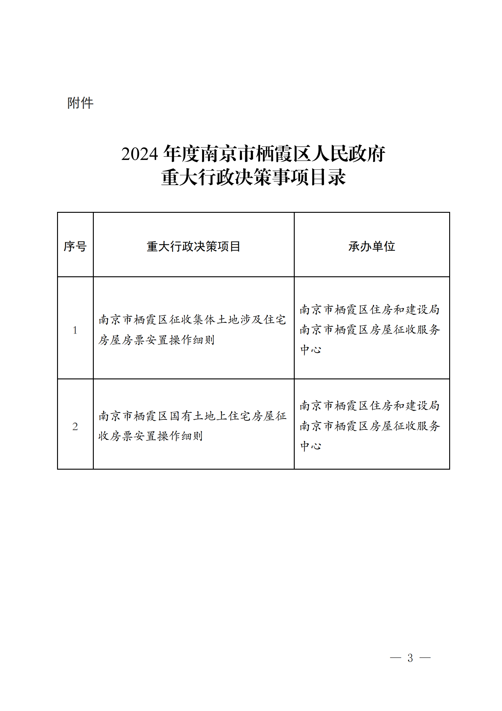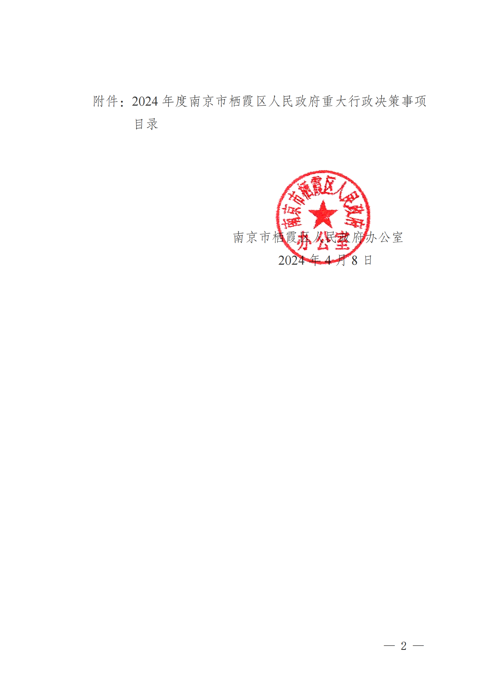 寧棲政辦字〔2024〕14號 關于公布2024年度南京市棲霞區人民政府重大行政決策事項目錄的通告