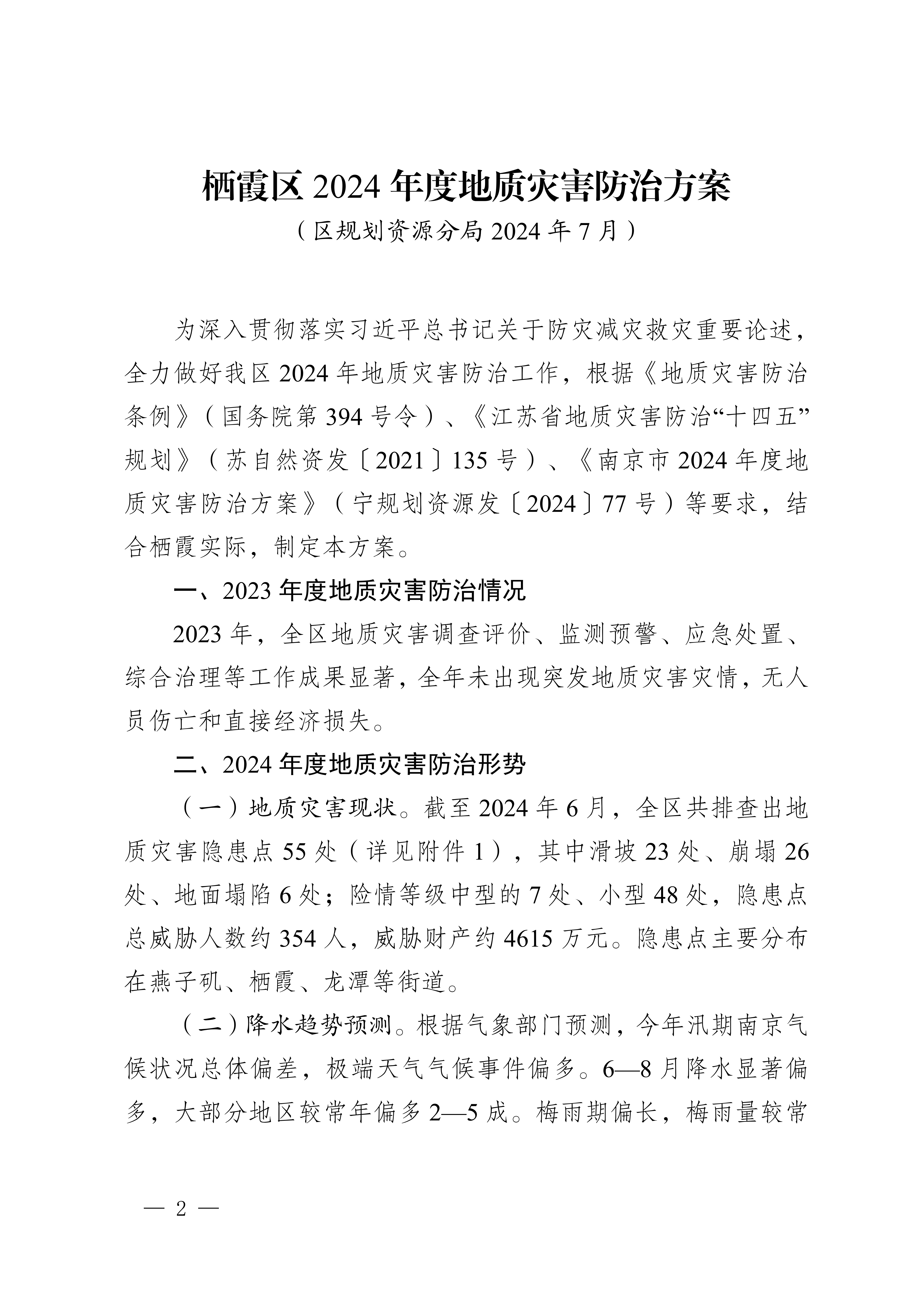 寧棲政辦字〔2024〕26號 關于轉發棲霞區2024年度地質災害防治方案的通知