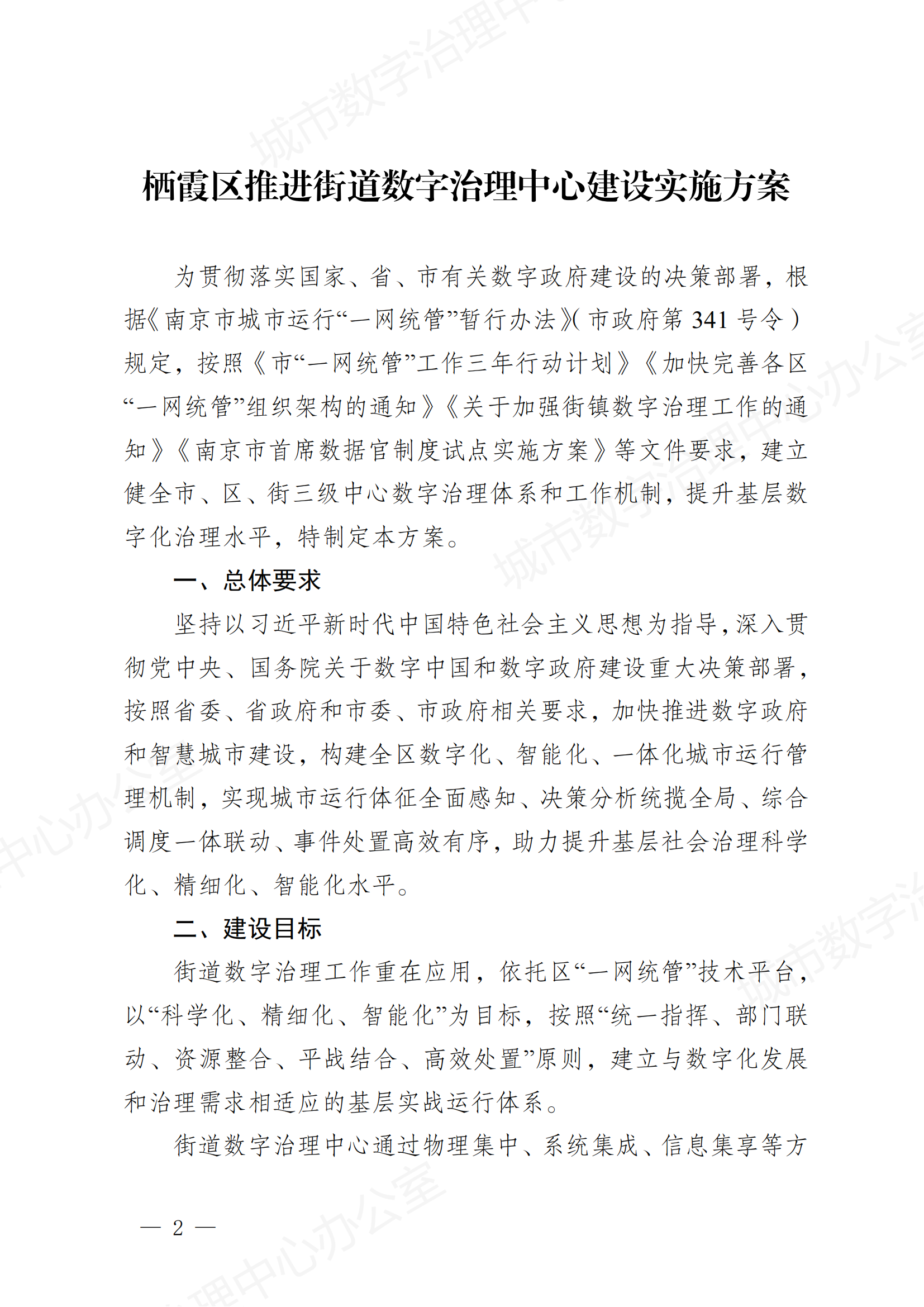 寧棲政辦字〔2024〕30號關于印發棲霞區推進街道數字治理中心建設實施方案的通知