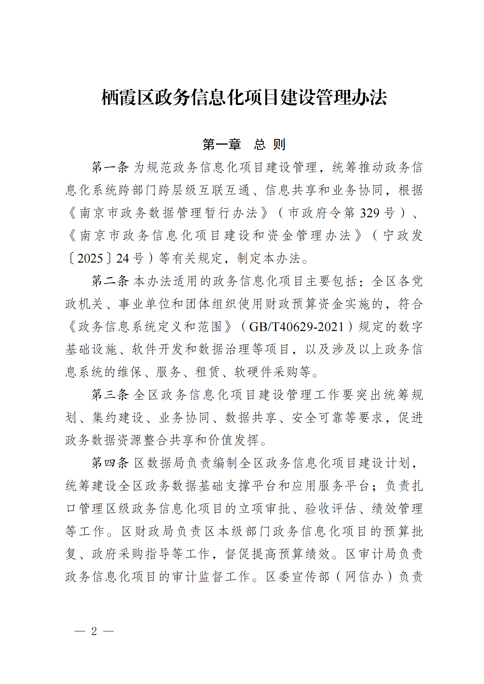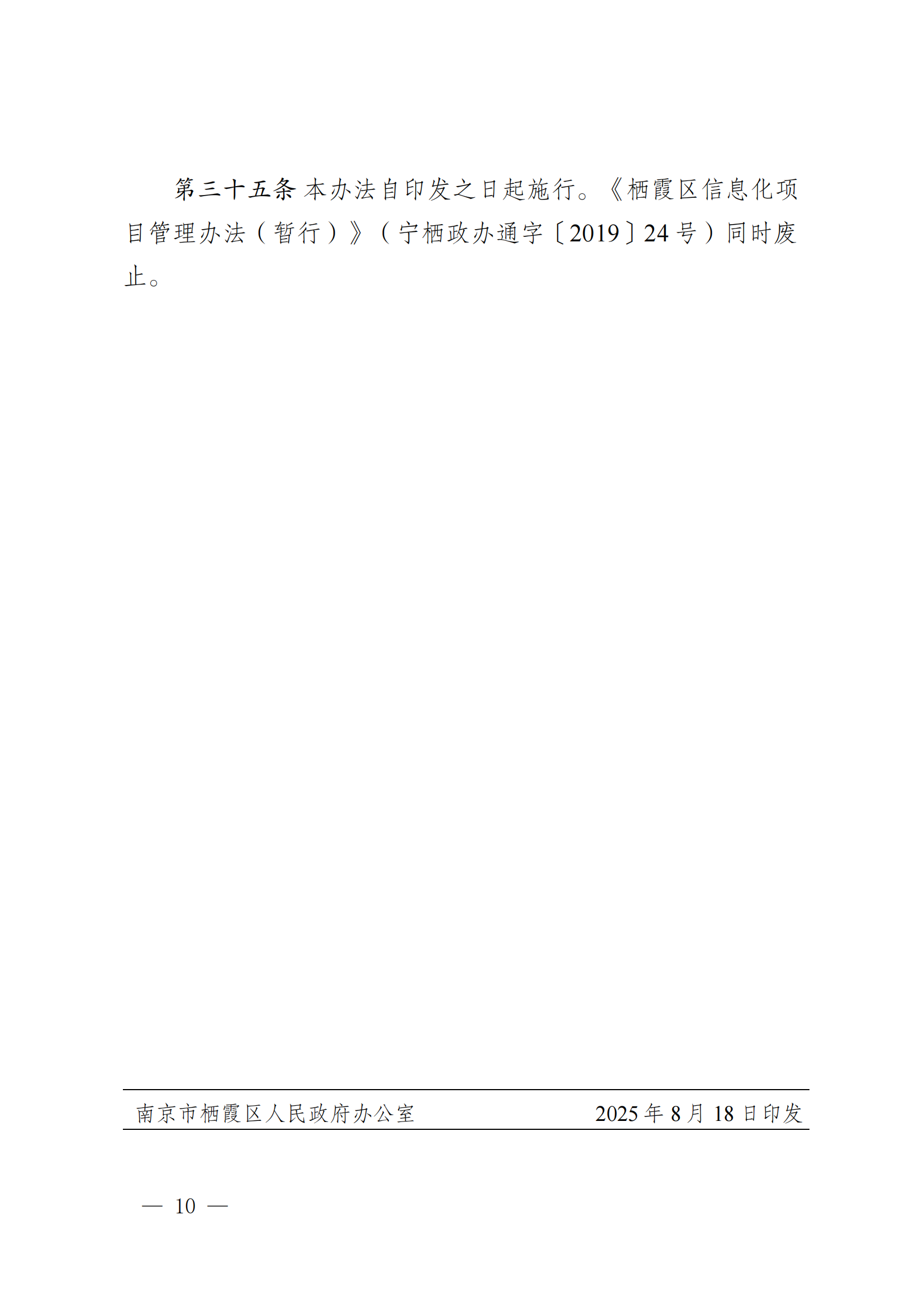 寧棲政辦字〔2025〕20號關于印發(fā)棲霞區(qū)政務信息化項目建設管理辦法的通知