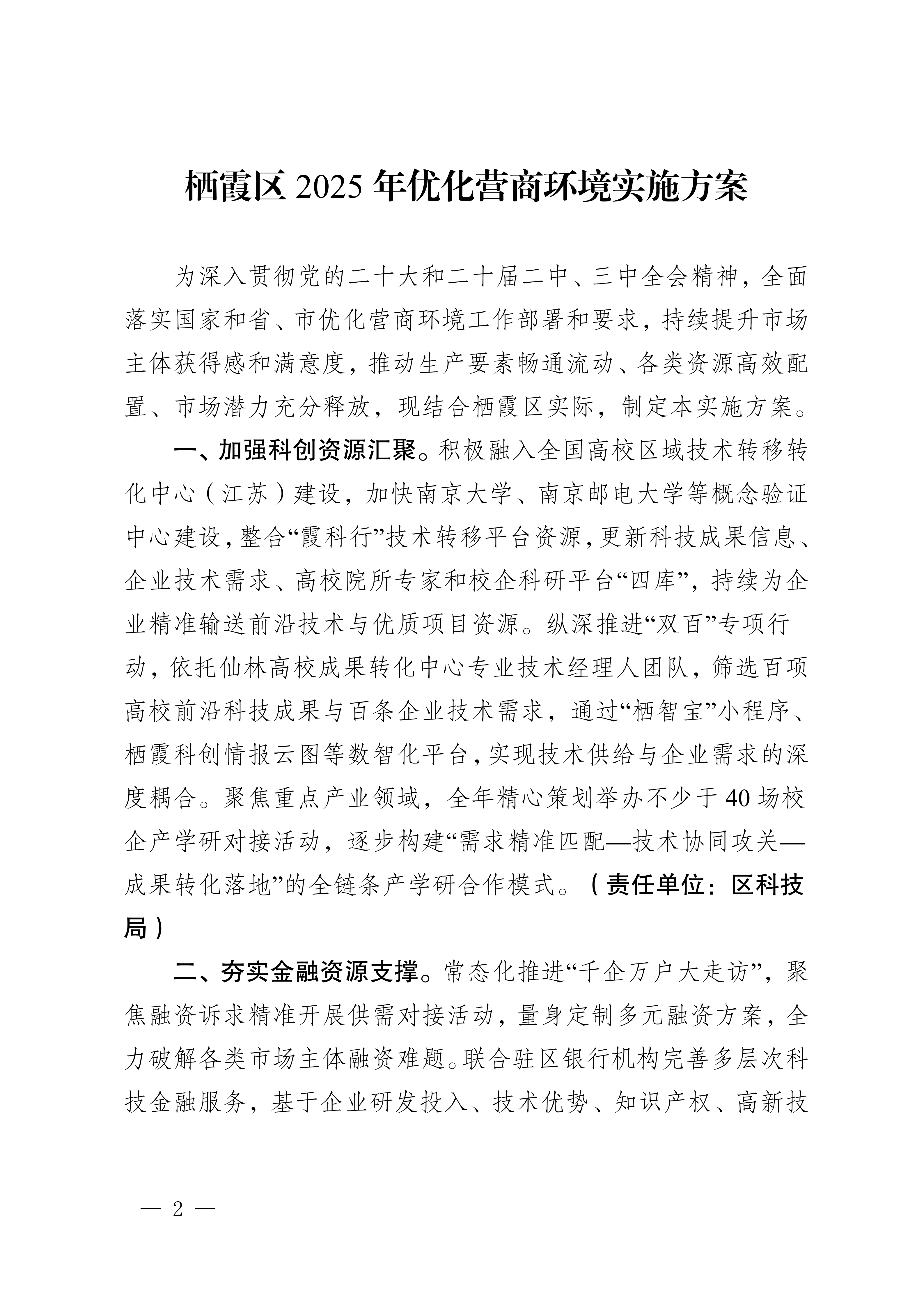 寧棲政辦字〔2025〕15號 關于印發棲霞區2025年優化營商環境實施方案的通知