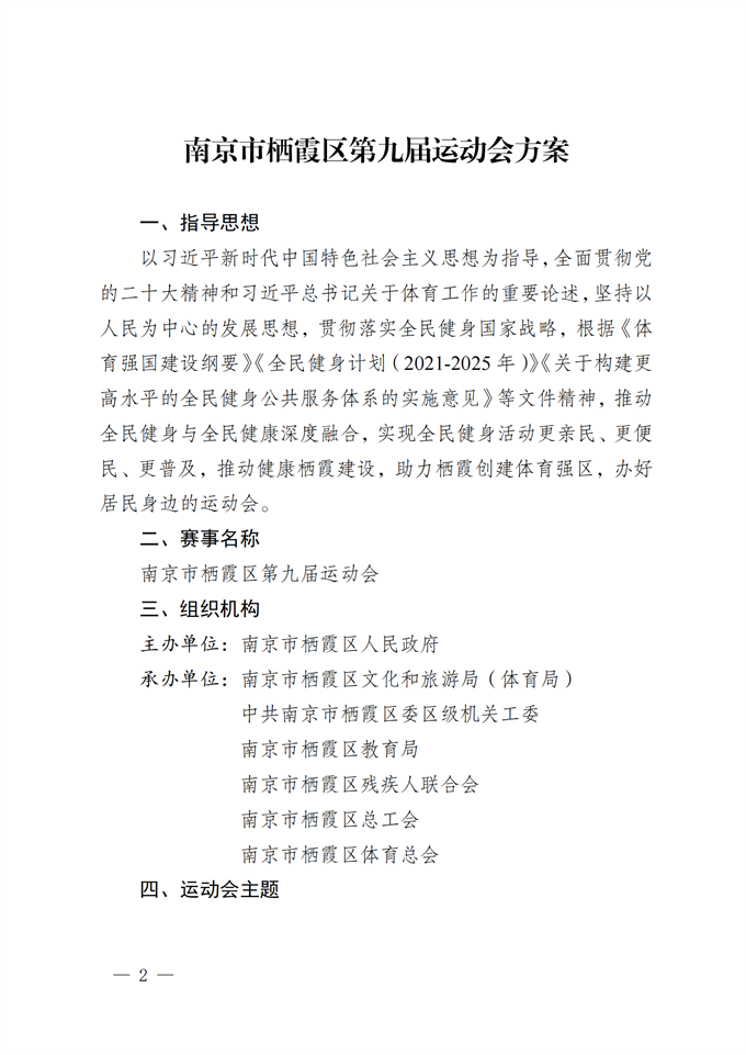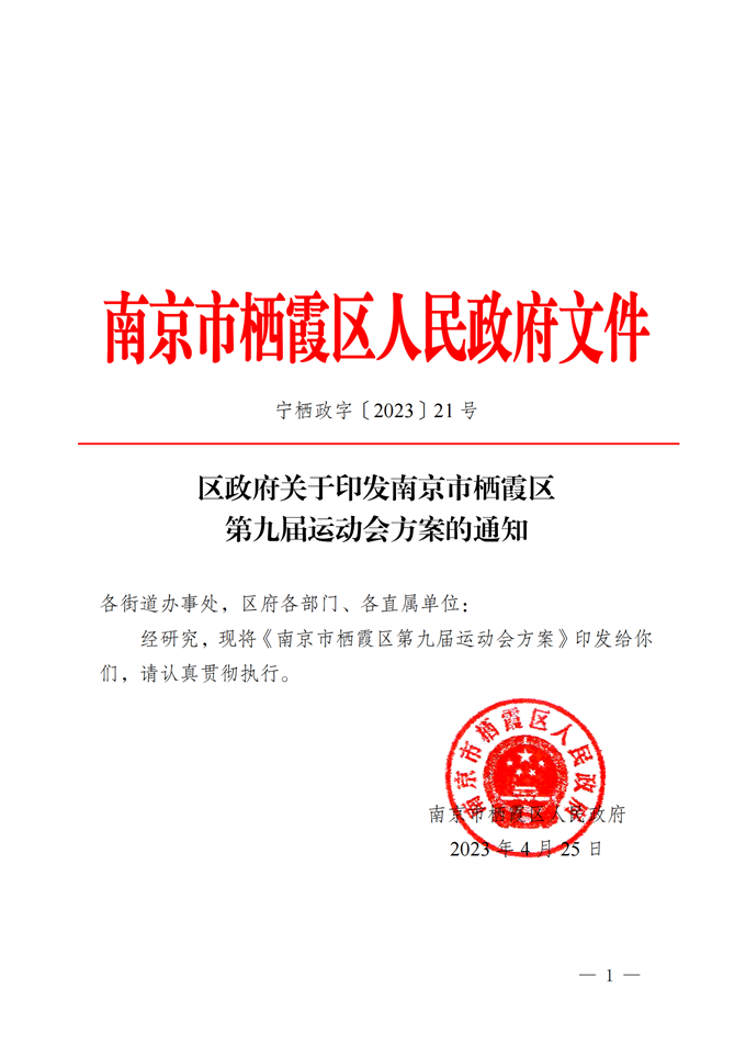 區政府關于印發南京市棲霞區第九屆運動會方案的通知