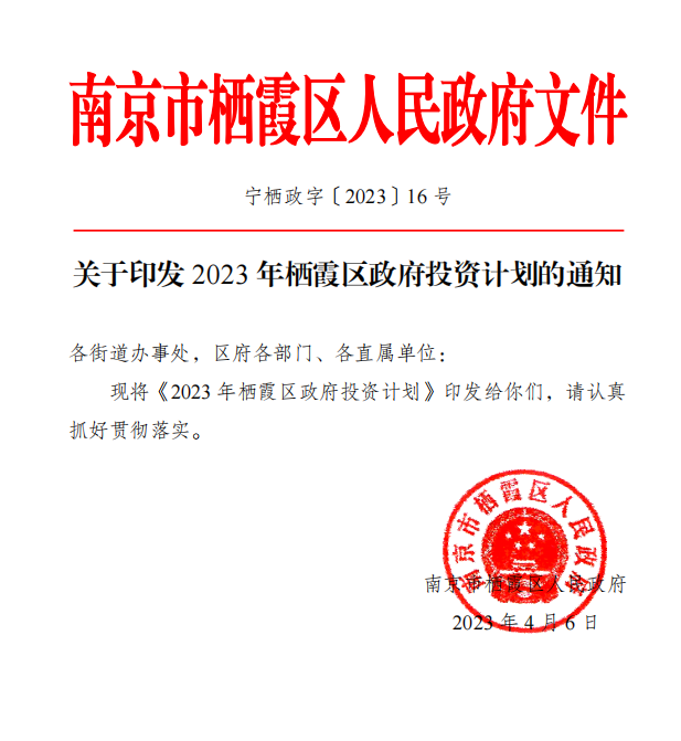 關于印發2023年棲霞區政府投資計劃的通知