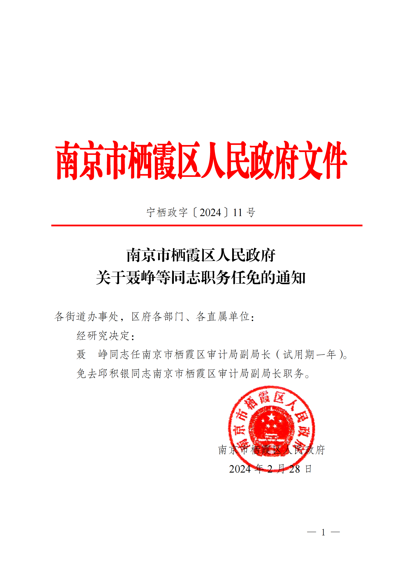 南京市棲霞區(qū)人民政府關(guān)于聶崢等同志職務(wù)任免的通知