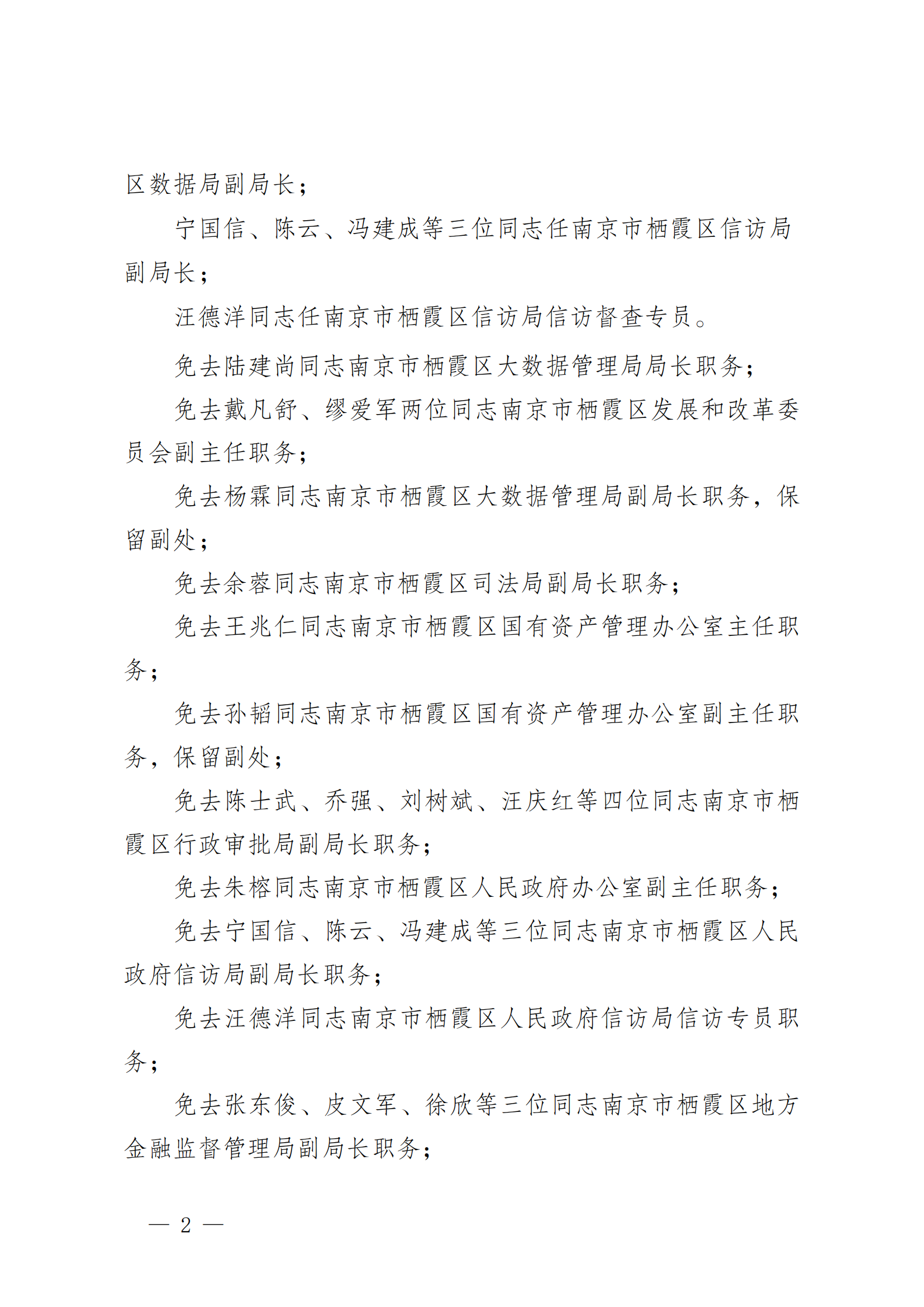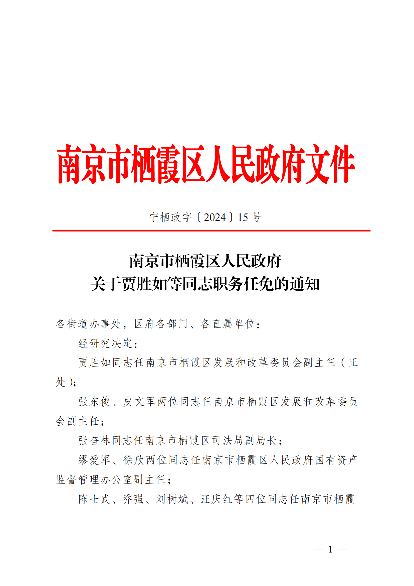 南京市棲霞區人民政府關于賈勝如等同志職務任免的通知