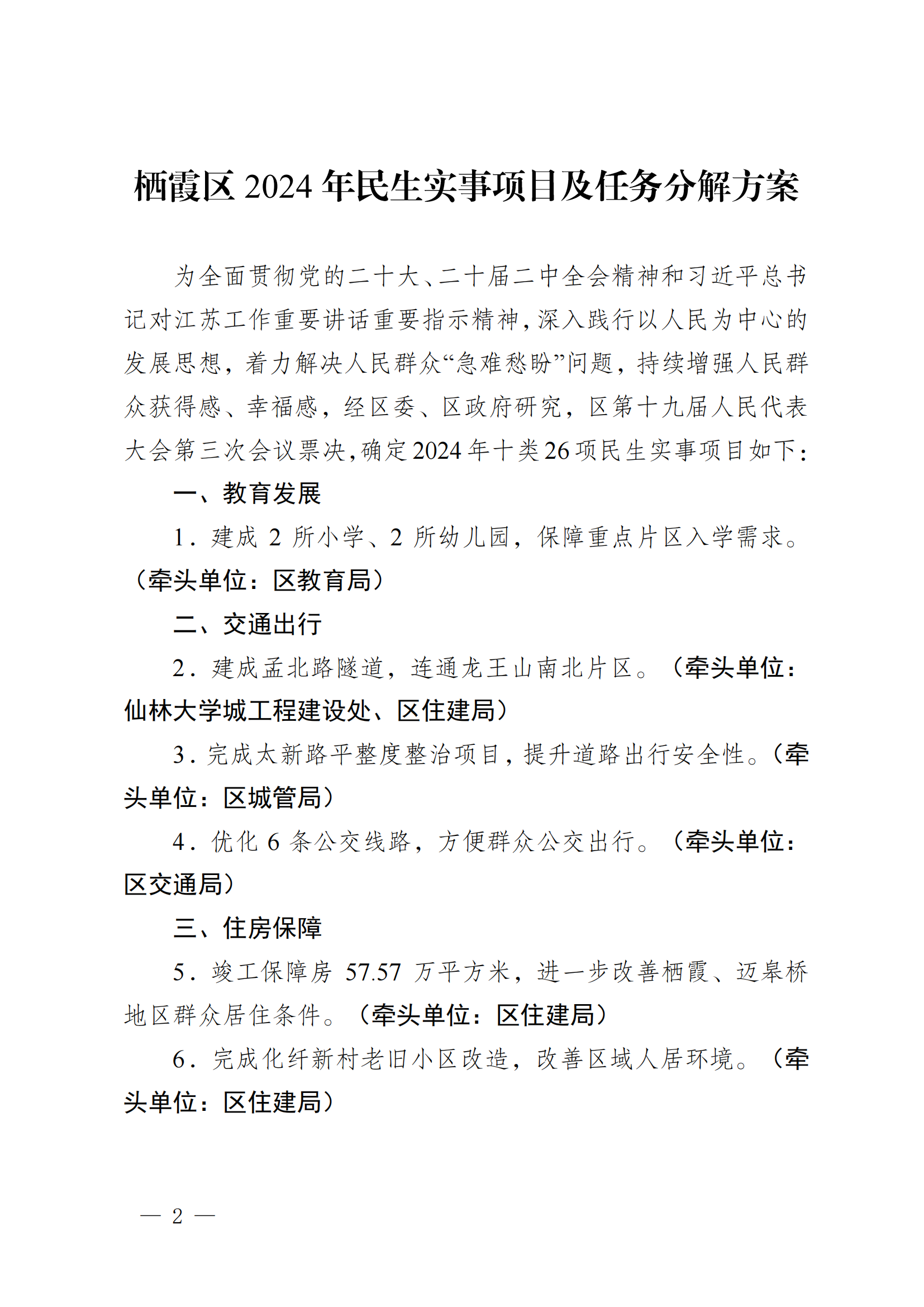 寧棲政字〔2024〕17號 關于印發棲霞區2024年民生實事項目及任務分解方案的通知