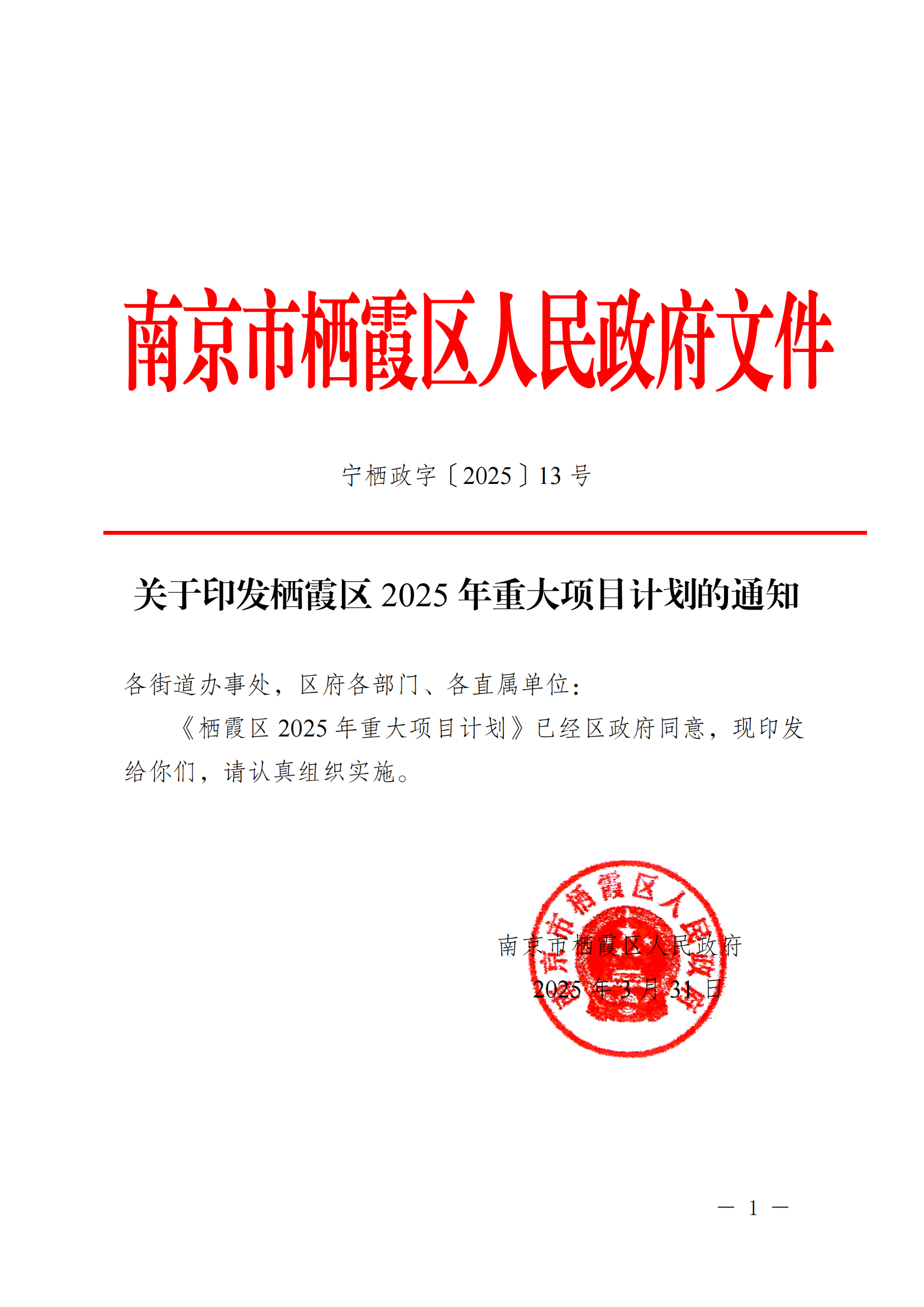 寧棲政字〔2025〕13號 關于印發棲霞區2025年重大項目計劃的通知
