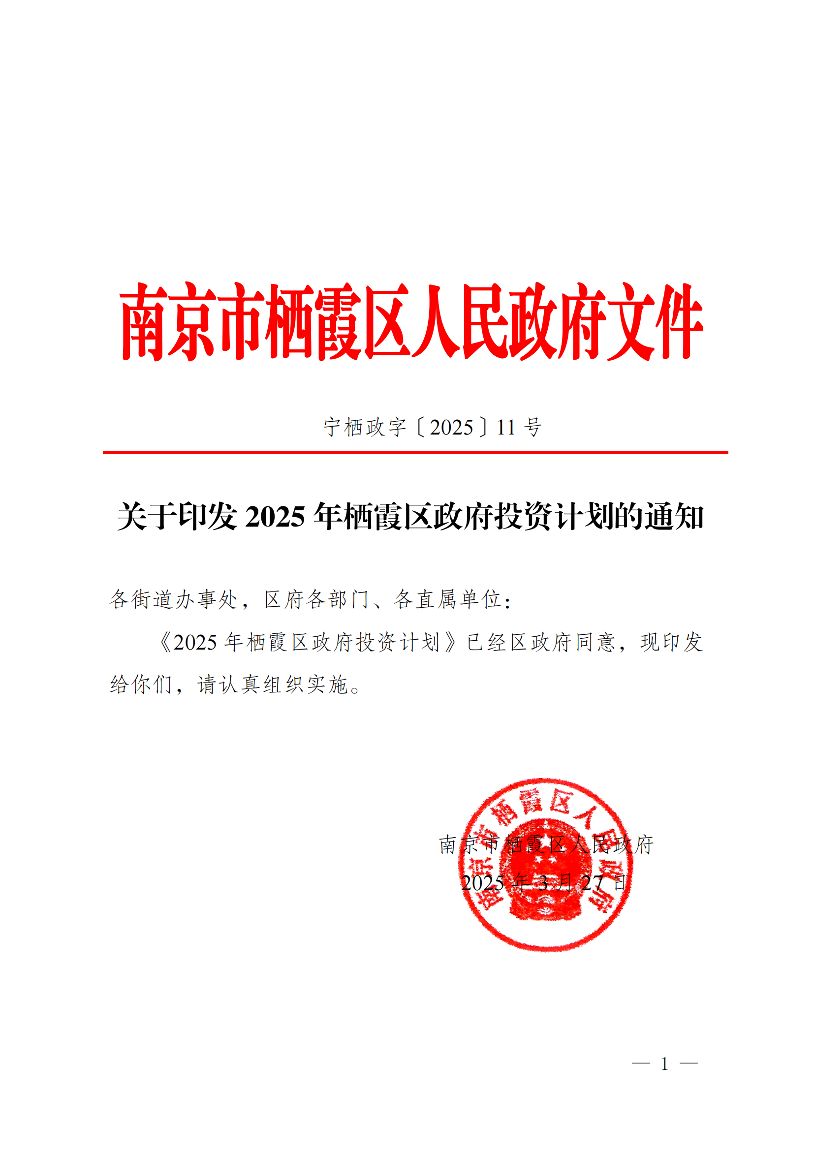 寧棲政字〔2025〕11號 關(guān)于印發(fā)2025年棲霞區(qū)政府投資計劃的通知