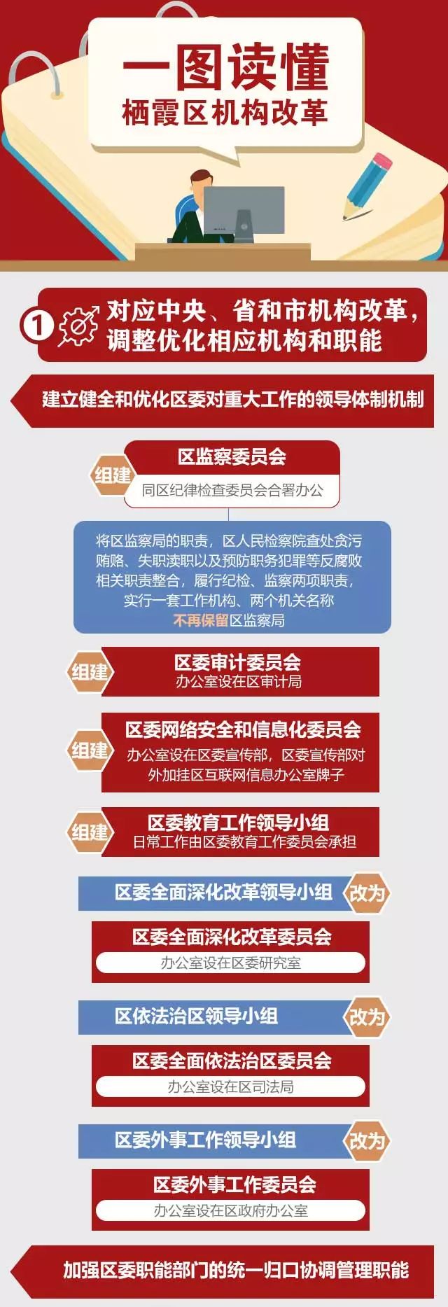 2月23日,棲霞區(qū)召開區(qū)級(jí)機(jī)構(gòu)改革動(dòng)員部署會(huì),深入學(xué)習(xí)貫徹習(xí)近平新時(shí)代中國(guó)特色社會(huì)主義思想和黨的十九大精神,全面落實(shí)中央關(guān)于深化黨和國(guó)家機(jī)構(gòu)改革的重大決策,對(duì)全區(qū)機(jī)構(gòu)改革各項(xiàng)工作作出專題動(dòng)員和部署。