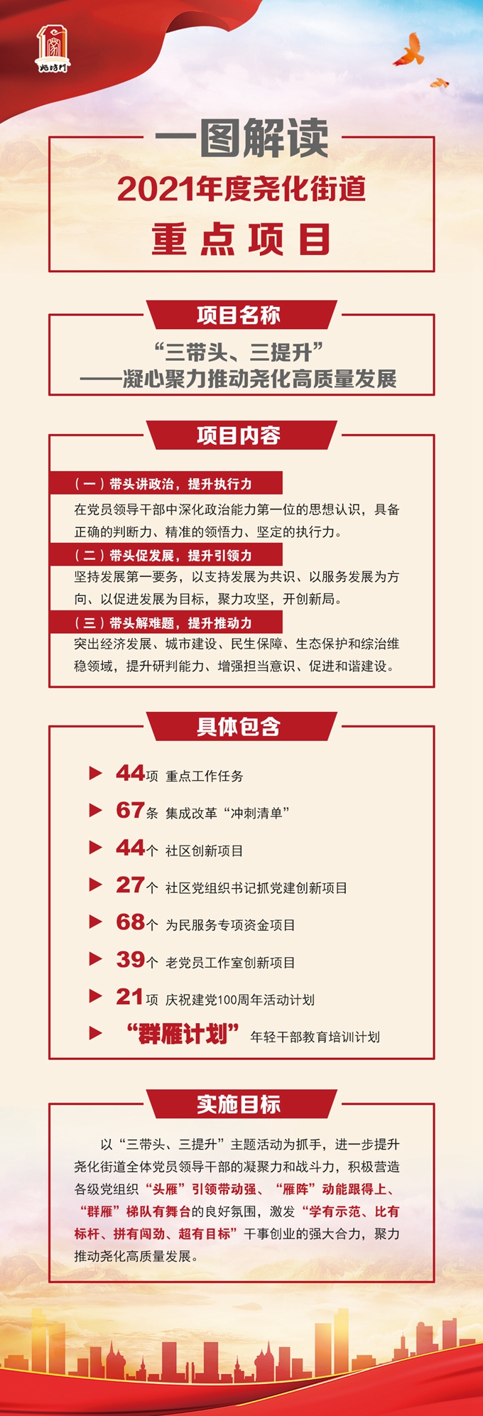 一圖解讀2021年度堯化街道重點(diǎn)項(xiàng)目(三帶頭、三提升——凝心聚力推動(dòng)堯化高質(zhì)量發(fā)展)