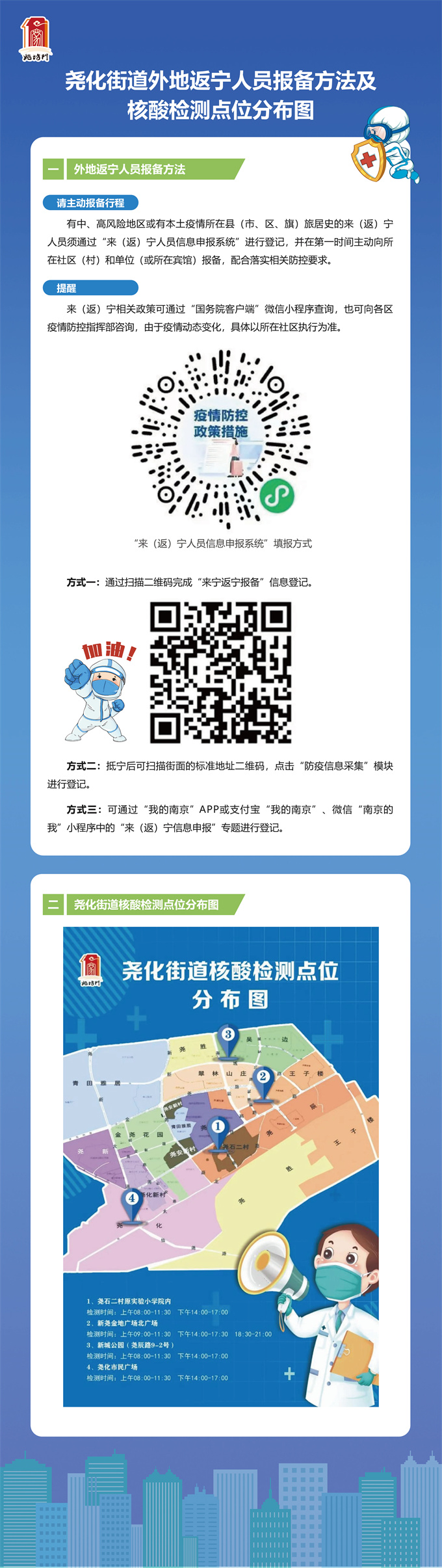 堯化街道外地返寧人員報(bào)備方法及核酸檢測(cè)點(diǎn)位分布圖