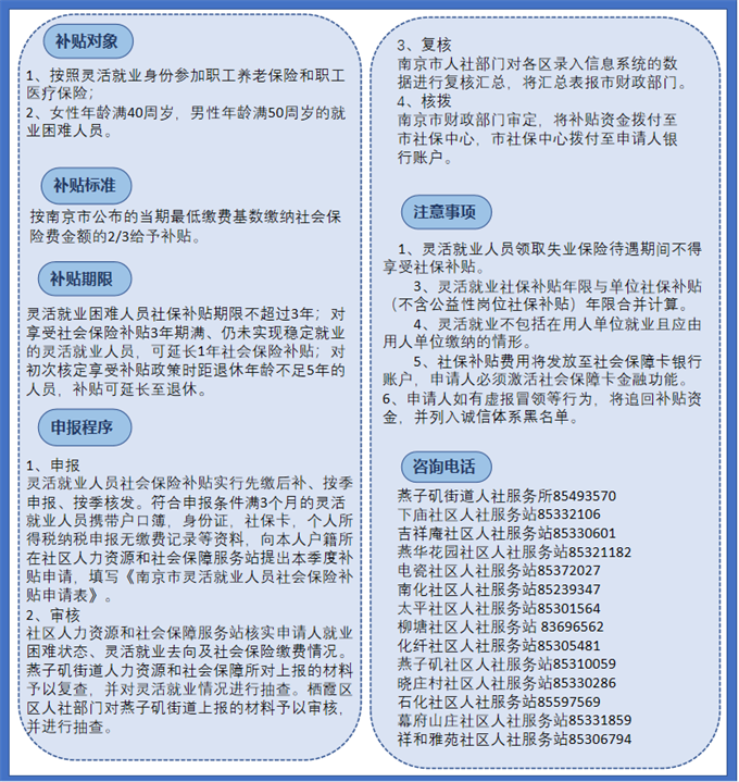 【圖解】燕子磯街道靈活就業困難人員社保補貼