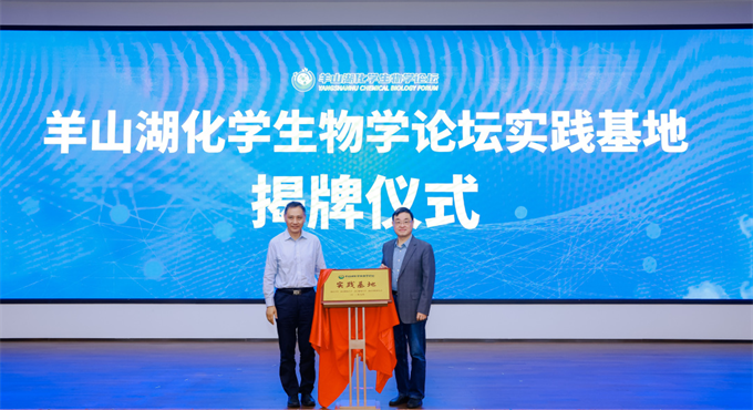 中國科學院院士、南京大學化學化工學院教授郭子建與南京市科技局副局長朱超平為“羊山湖化學生物學論壇實踐基地”揭牌