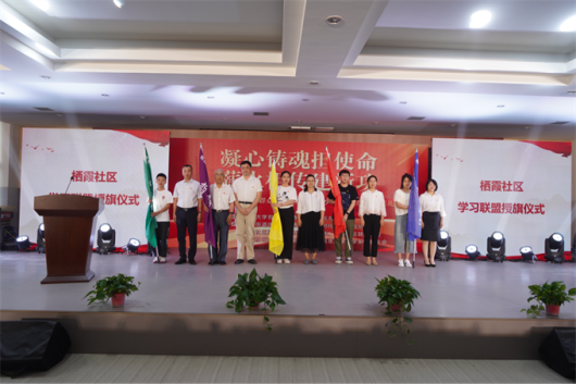 棲霞社區黨委書記張飛致辭。他表示,棲霞社區始終堅持黨建引領基層治理,緊扣“自治、法治、德治、智治”,十年來與南京大學哲學系堅持資源共建共享,積極落實特色品牌,共同推動中華優秀傳統文化傳承與發展。今年,適逢雙方黨委共建十周年,特此成立黨建學習聯盟,牢牢把握大團結、大聯結主題,凝聚多方合力,共擔育人職責,創新互助模式,提增服務水平。