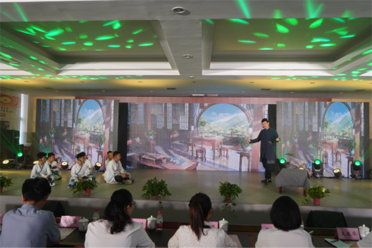南京大學哲學系黨委副書記孟振華致辭。孟振華表示,自2014年以來,南京大學哲學系與棲霞社區探索合作共建新模式,持續強化校地交流,共同助力傳統文化教育,南京大學哲學系青少年國學啟蒙班團隊已連續十年走進棲霞社區,為青少年兒童義務開設傳統文化課程。今年,南哲青年將勇立時代潮頭,切實承擔新時代新的文化使命,以守正創新的正氣和銳氣,賡續歷史文脈,弘揚傳統文化,講好中國故事,反映時代聲音。他希望來自哲學系的講師增強建設文化強國的使命感、責任感,通過進課堂、上講臺展示南哲青年良好的精神風貌,講好優秀傳統文化的故事、講好黨的故事,講好青年實踐奉獻的故事,在實踐中承擔新時代新的文化使命。