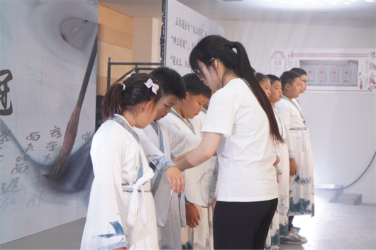 大會最后,南大-棲霞第十屆青少年國學啟蒙班開筆禮正式啟動。本次開筆禮包括正衣冠、朱砂啟智、寫人立誓與經典誦讀四個儀式,旨在讓孩子們在儀式教育中領略中華優秀傳統文化的魅力,激勵孩子們勤奮好學、尊師孝親、崇德立智、仁義博愛。