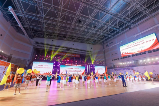 瑜伽表演《奔跑的青春》充分體現了棲霞瑜伽愛好者們高超的技藝、優美的情懷。廣場舞《豐收》的表演者們優美而富有力量的演繹,充分展現了新時代水韻江蘇的富足、繁華。在活力四射、輕舞飛揚的羽毛球表演《爭鋒對決》中,羽毛球世界冠軍湯金華微笑現身……